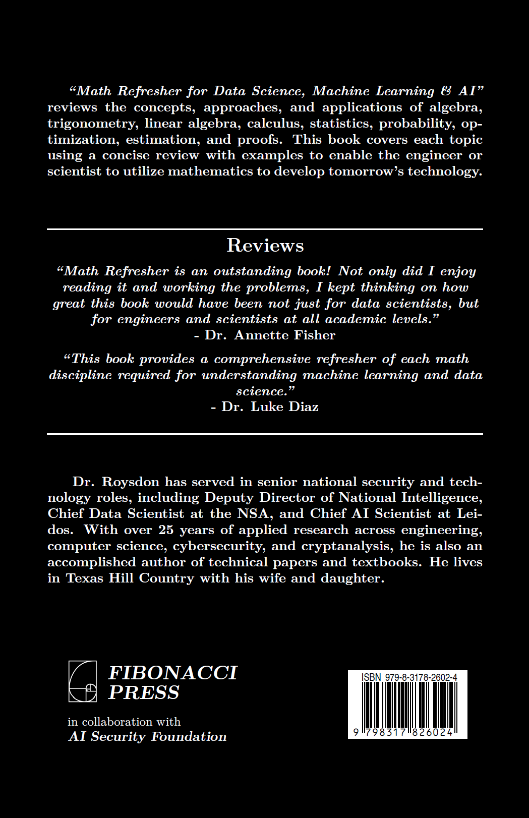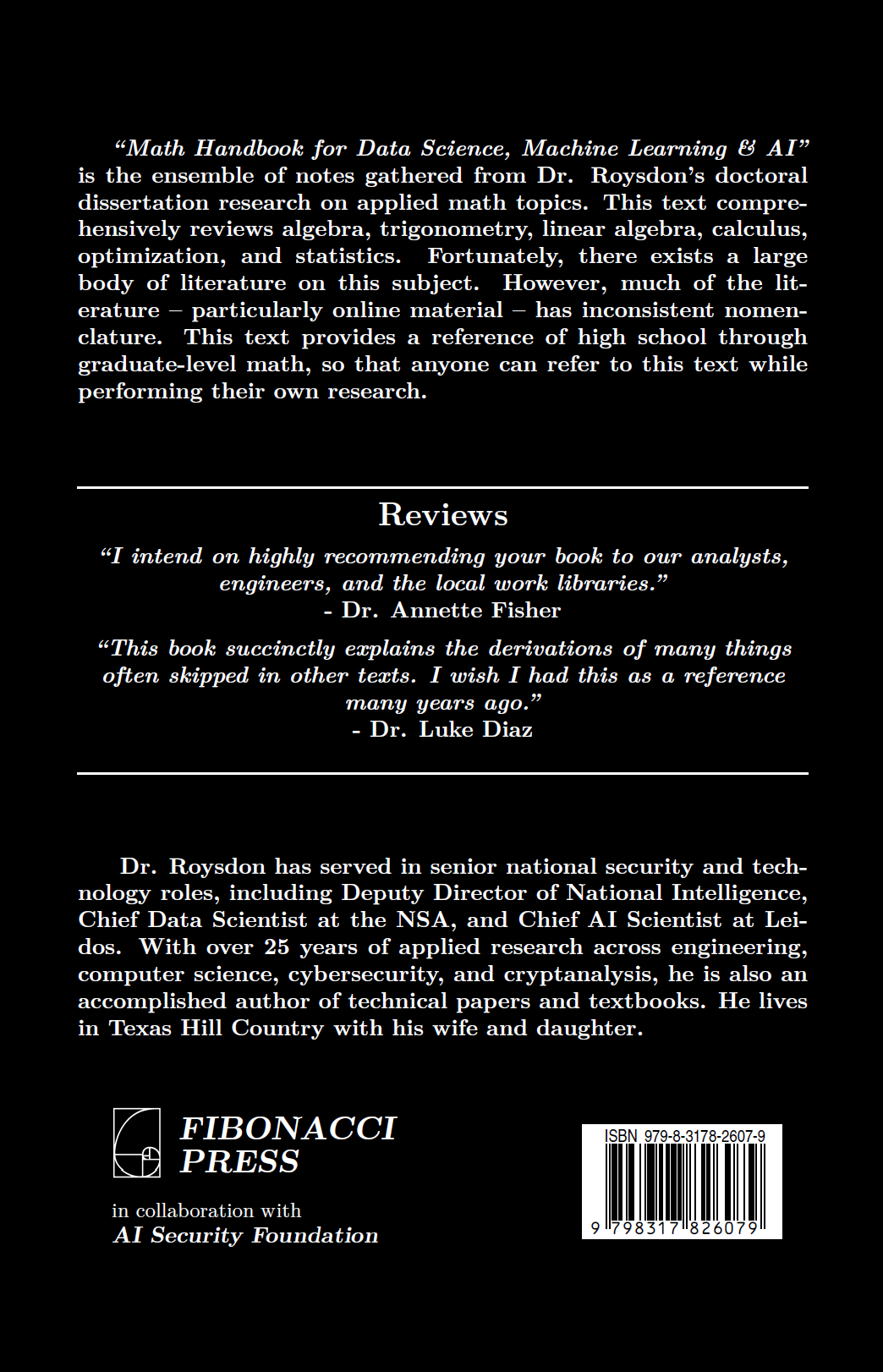 Thank you for visiting our Store!We are pivoting to a new printer and supply chain to get everything back in stock by Dec. 2025. A Comprehensive Approach to Data Science, Machine Learning & AI $120.00 Sold out Math Refresher for Data Science, Machine Learning & AI $60.00 Sold out Math Handbook for Data Science, Machine Learning & AI $40.00 Sold out How to do Research $40.00 Sold out Optimal Nonlinear Bayesian Estimation & Sensor Fusion $40.00 Sold out